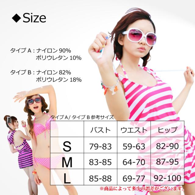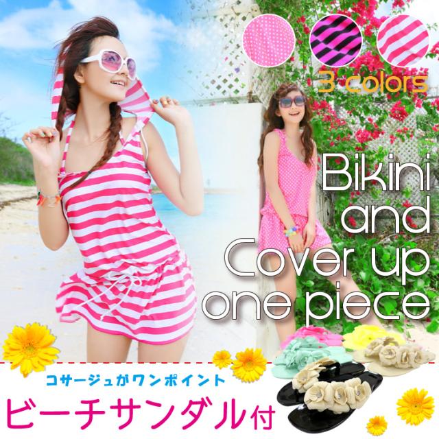 DABADA(ダバダ) ビキニ&カバーアップ 3点セット パット付き ドット柄/ボーダー柄 レディース水着 レビュー投稿でビーチサンダルGET 送料無料