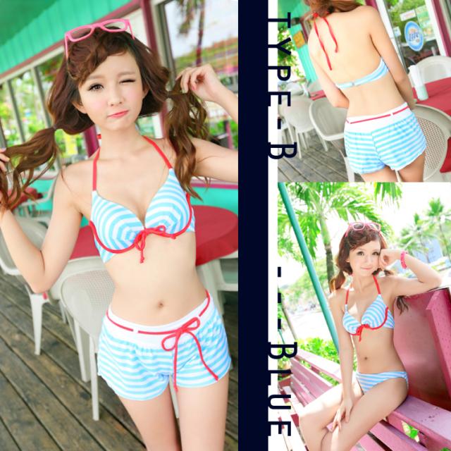 DABADA(ダバダ) ホルターワイヤービキニ 3点セット パット付き ボーダー柄/フリル レディース水着 レビュー投稿でビーチサンダルGET 送料無料