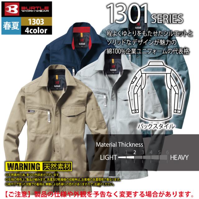 バートル BURTLE 作業服 作業着 1303 長袖シャツ S-LL かっこいい おしゃれ 春夏用