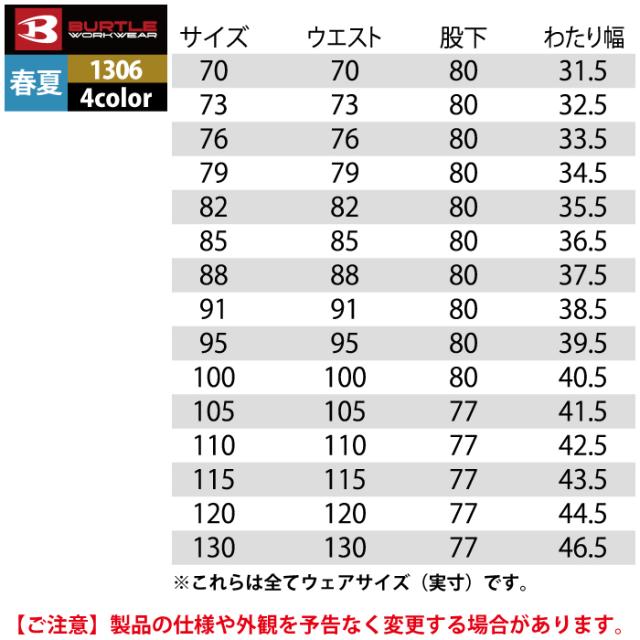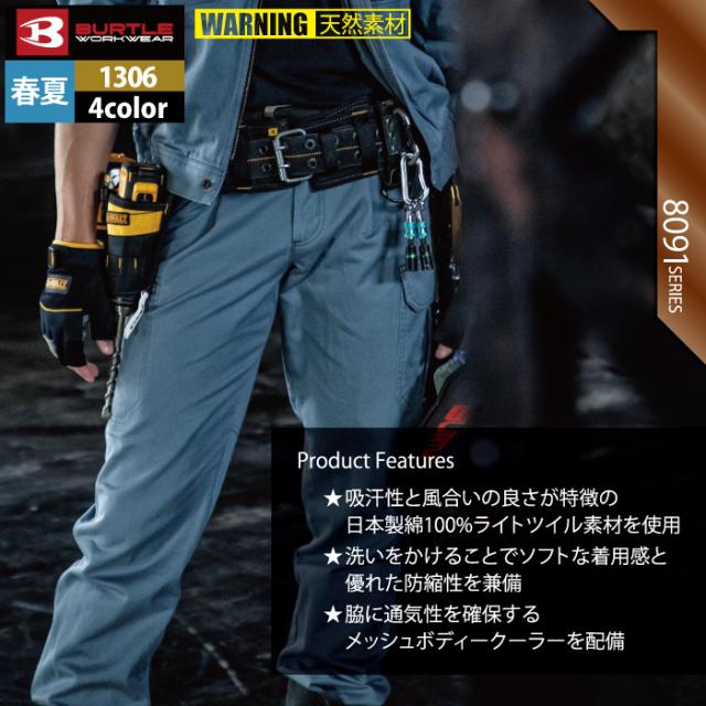 バートル BURTLE 作業服 作業着 作業ズボン 1306 ワンタックカーゴパンツ 120-130 かっこいい おしゃれ 春夏用 ズボン