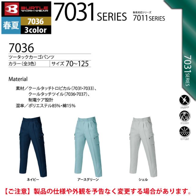 バートル BURTLE 作業服 作業着 作業ズボン 7036 ツータックカーゴパンツ 91-100 かっこいい おしゃれ 春夏用