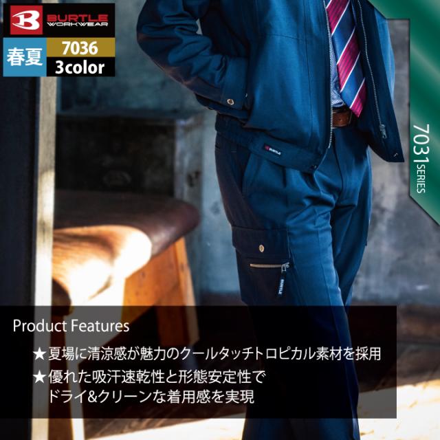 バートル BURTLE 作業服 作業着 作業ズボン 7036 ツータックカーゴパンツ 105-115 かっこいい おしゃれ 春夏用
