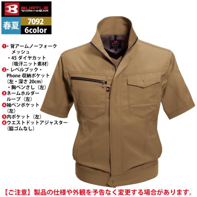 バートル BURTLE 作業服 作業着 7092 半袖ジャケット 5L かっこいい おしゃれ 春夏用