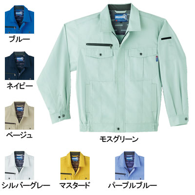 | ●関連商品※611半袖ブルゾン※613長袖ブルゾン※619スラックス※615長袖シャツ※617半袖シャツ※618カーゴパンツ ●春夏用 ●素材/ポリエステル65%・綿35%(T/Cソフトバーバリー) ●胸ファスナーポケット、大切な物の収納に適した、ファスナー付きポケット。携帯電話ポケット、携帯電話がピッタリ収まる機能的な専用ポケット。内ポケット&内ペン差し、手帳もスッポリ入る便利な内側ポケットと、内側にペン差しを採用。背裏メッシュ&衿裏メッシュ、高級感のあるメッシュ生地を背裏に、ひんやり涼しいメッシュ生地を衿裏に使用しました。ノーフォーク、背中のノーフォークで作業時のツッパリ感を解消!トリカット、袖下から脇に施された特殊カッティングで、作業性が格段にアップ!袖ペン差し、左袖部分にペン差しを採用。デオドラントテープ、いやなニオイをシャットアウト!効果バツグンの消臭テープ。袖口アジャスト釦、調節可能なアジャスト釦を袖口に採用。 ●サイズ:SS(胸囲/106、肩巾/44、着丈/58、袖丈/54)、S(胸囲/110、肩巾/46、着丈/62、袖丈/54)、M(胸囲/114、肩巾/48、着丈/64、袖丈/56)、L(胸囲/118、肩巾/50、着丈/66、袖丈/58)、LL(胸囲/122、肩巾/52、着丈/68、袖丈/60)、3L(胸囲/126、肩巾/54、着丈/70、袖丈/62)、4L(胸囲/134、肩巾/56、着丈/70、袖丈/62)、6L(胸囲/144、肩巾/58、着丈/70、袖丈/62) ●カラー:ネイビー、ベージュ、ブルー、シルバーグレー、マスタード、モスグリーン、パープルブルー |