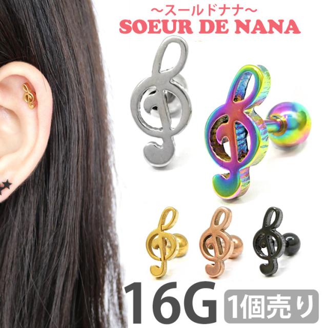 ピアス 軟骨 ボディピアス Soeur de Nana ト音記号モチーフのミュージックノートバーベル 16G