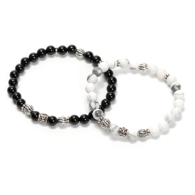 可愛らしい雰囲気のホワイトターコイズとクールな雰囲気のオニキスのシンプルなブレスレットは男女共に好評です。