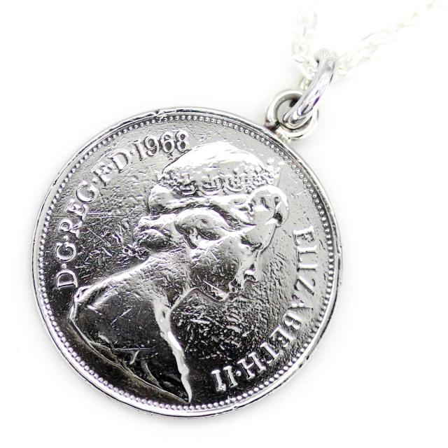 イギリスの10ペンス硬貨がモチーフのクールなコインネックレスです。
