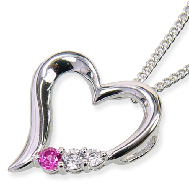 シルバー天然ピンクトルマリンオープンハートペンダント【10月誕生石 トルマリン・オパール】