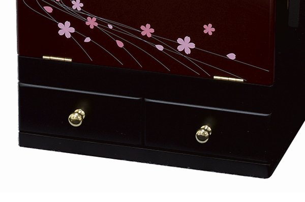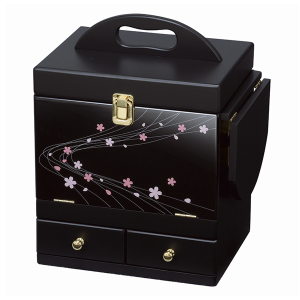 光沢ある本体に蒔絵調の桜が描かれた、上品なコスメボックスです。気品溢れるデザインで、和室やアジアンテイストなお部屋におすすめです。