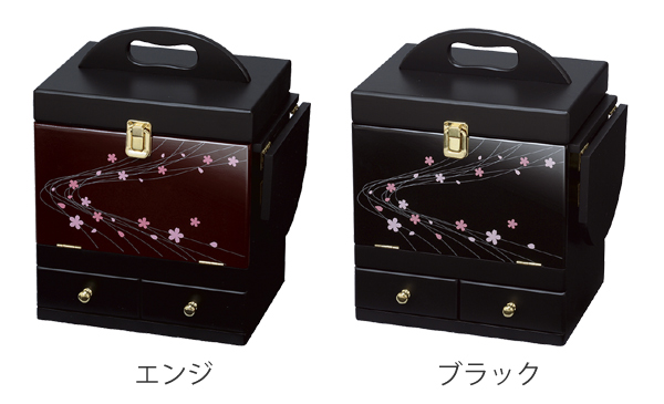 《 LH115 和室 花柄 桜 小花柄 落ち着いた 母の日 移動 取っ手付 引出し 三面 化粧品 メイク 化粧収納 ミラー付き メイク道具 メイクアップ ネイル ピアス イヤリング MUD-6163EN MUD-6163BK 》