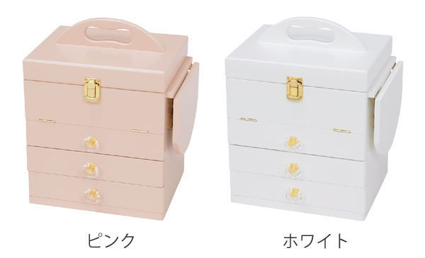 シンプルなデザインのコスメボックスで、様々なタイプのお部屋にマッチします。カラーは女性に人気のホワイトとピンクの2色展開です。構造もシンプルで使いやすいボックスなので、化粧品だけでなくアクセサリーなどの小物も収納にもおすすめです。