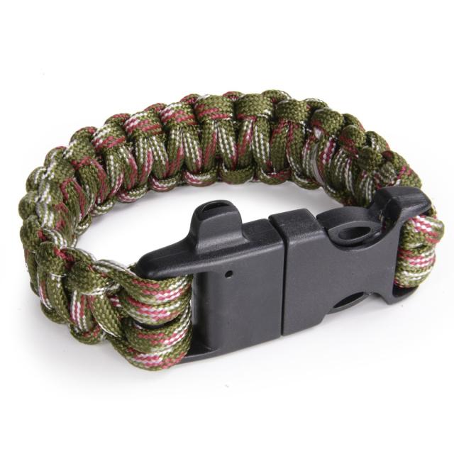 パラコードブレスレット サイドリリースバックル 笛 ファイアスターター付 [ OD&レッド&ホワイトカモ ][rev04817]