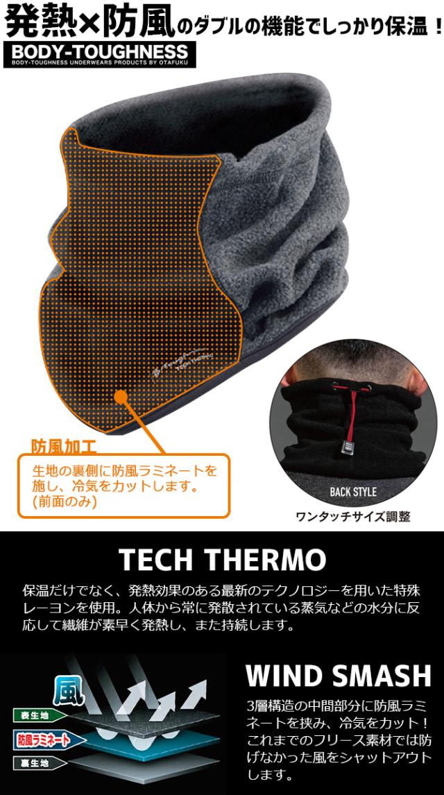 ネックウォーマー 発熱防風 2カラー JW-124保温 防寒 テックサーモ
