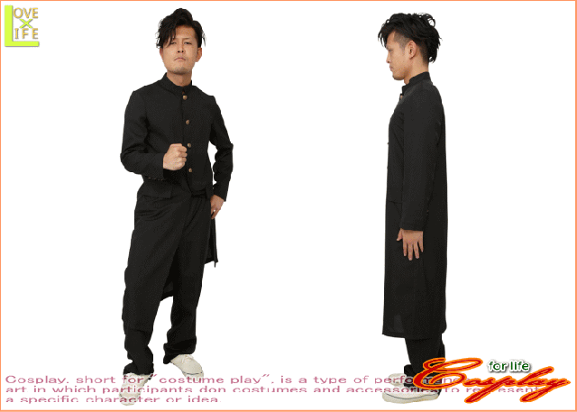 ■説明■長ラン【不良】【ヤンキー】【学ラン】【仮装】【パーティ】丈の長さにこだわった本格的な長ラン。前部分の5つのボタンと、さりげなく袖口についた金ボタンが長ランのかっこよさを際立たせます。ジャケットだけでなくパンツもセットなので、これだけで気軽にコスチュームを楽しむことができます。【コスプレ】【衣装】【コスチューム】■サイズ・仕様■着丈:上着:約118cm、パンツ:約103cm身長:約〜180cm、バスト:約〜101cm、ウエスト:約〜88cm、ヒップ:約〜99cm素材:ポリエステル100%【セット内容】上着、パンツ(*゜□゜)/ かわぇぇ〜【コスプレ】【衣装】【コスチューム】で毎日の生活を楽しんでください!■当商品について■*在庫状況により入荷待ち・欠品になる場合がございます。予めご了承下さいますようお願いいたします。