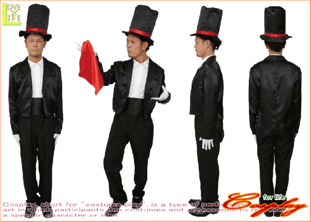 【1 】マジック スーツ【マジシャン】【奇術師】【仮装】【パーティ】これぞ王道マジシャンスーツ!燕尾ジャケットに太めカマーベルト♪