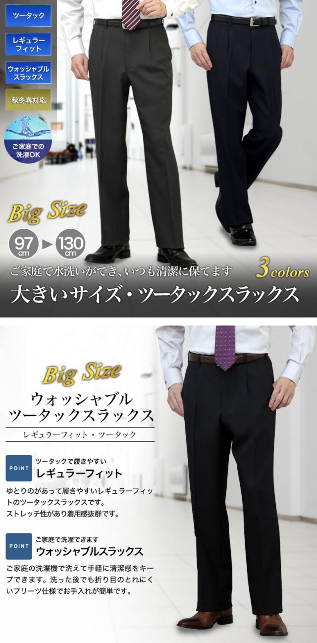 大きいサイズ スラックス 秋冬春 ウォッシャブル ツータックスラックス キングサイズ【クロネコゆうパケット】 洗濯機で水洗いOK メンズ スラックス 送料無料