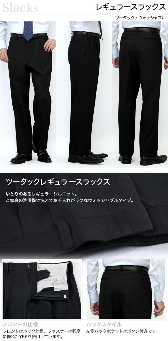 | ・ツータック ・レギュラーフィット ・ストレッチ ・ご家庭で水洗いできるウォッシャブルタイプ ・プリーツ加工 |