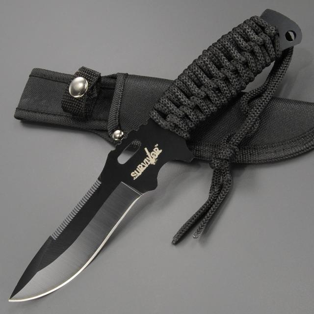 1枚のステンレスから作られたブレードとハンドル。ハンドルにはパラコードが巻かれ指をかける大きなアールがデザインされています。ロープを切断にザイルカッター付。