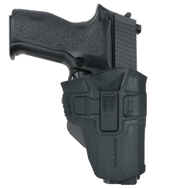 ロック機構はScorpusシリーズのLevel 2保持システムを採用しており、収納する事でトリガーガード部分にロックがかかる構造。解除する際は側面のレバーを押しながらハンドガンを引き抜くことで素早いドローが可能です。