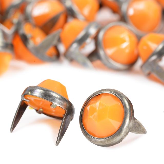 [ラウンドスタッズ ハンドクラフト材 ストーン付 12mm オレンジ]