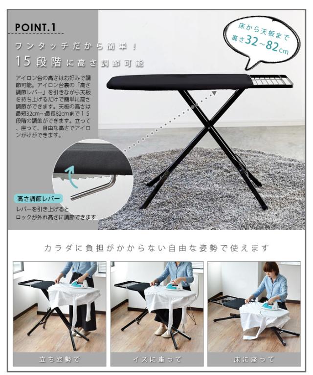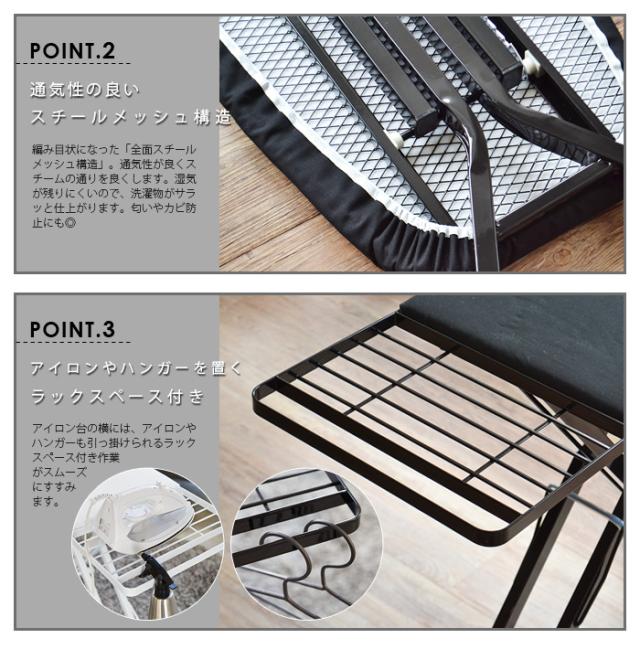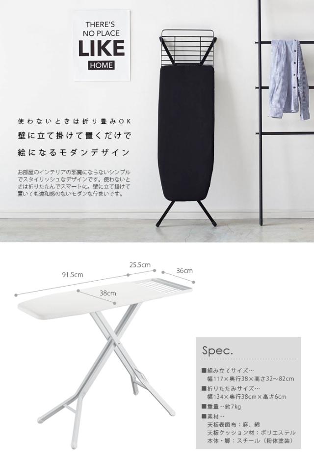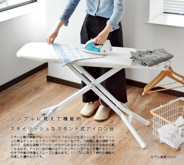 スチール製の無駄のないシンプルなフォルムが生活シーンをスタイリッシュに飾るオシャレなスタンド式のアイロン台です。