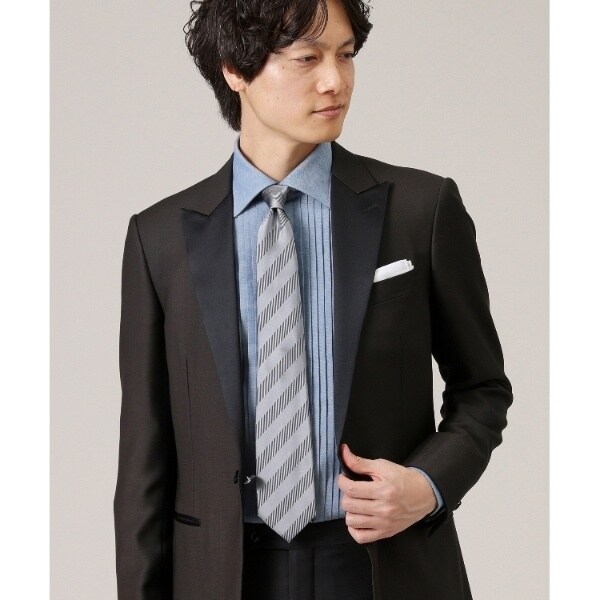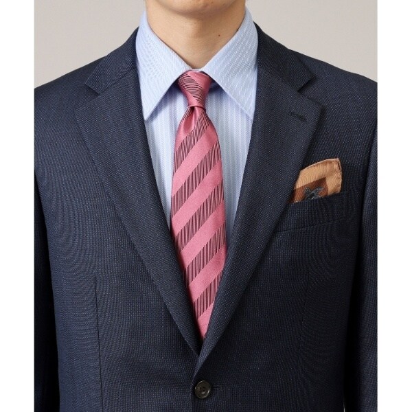 通常のネクタイ生地の3倍の縦糸本数で密に織ったシルクサテンが、きめ細かい光沢感とエレガントな仕上がりになっています。