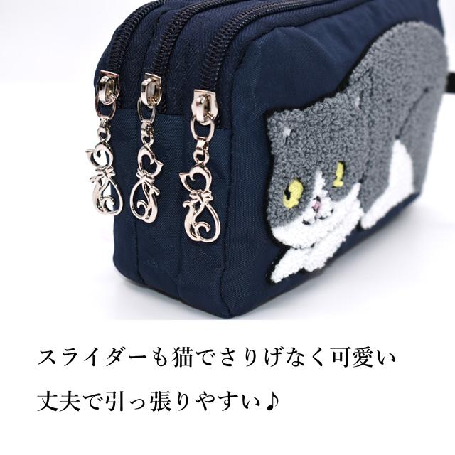 ポーチ 猫 化粧ポーチ 猫柄 仕分けポーチ 3ポケット 小物入れ ナイロン 軽量 人気 ねこ キャット レディース かわいい おしゃれ ギフト