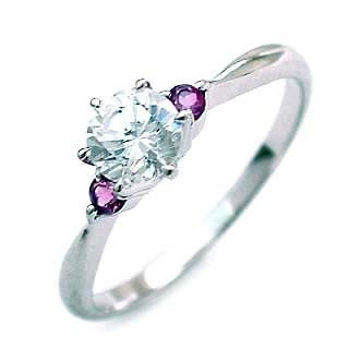 2月誕生石 アメジスト Pt ダイヤリング 婚約指輪・エンゲージリング