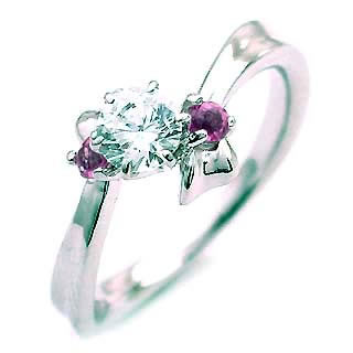 ダイヤモンドのサイドにアメジストをアレンジ。 可愛らしいリボンモチーフで毎日つけたい気分。 ダイヤモンドは輝きの良いエクセレントカットを使用。 エンゲージリングにも。(婚約指輪) 2月誕生石 名入れギフト イニシャル入れギフト コメント欄にご希望の刻印をご記入ください。 送料無料 保証書付。 Pt900 ダイヤモンド 0.4ct Eカラー VVS2 EX 鑑定書付 サイド アメジスト 2石入り