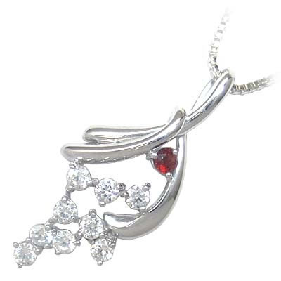 スイート エタニティ ダイヤモンド 10 個 1月誕生石 K18ホワイトゴールド ダイヤモンド・ガーネットペンダントネックレス 結婚 10周