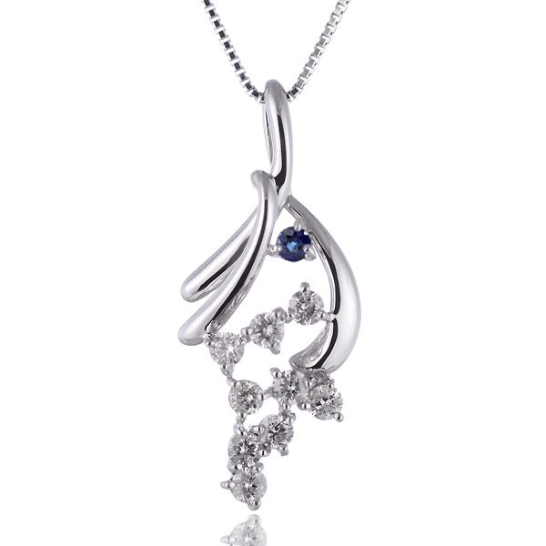 スイート エタニティ ダイヤモンド 10 個 9月誕生石 K18ホワイトゴールド ダイヤモンド・サファイアペンダントネックレス 結婚 10周