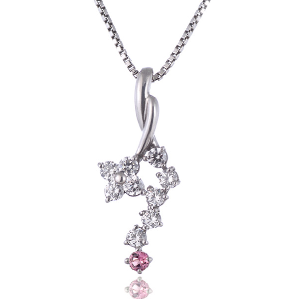 スイート エタニティ ダイヤモンド 10 個 10月誕生石 プラチナ ダイヤモンド・ピンクトルマリンペンダントネックレス 結婚 10周年記