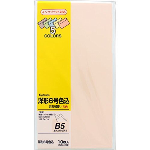 インクジェットプリンタ対応。洋形6号(98×190mm)。B5サイズ3つ折りに適しています。郵便枠印刷なし。定形郵便。5色×各2枚入。