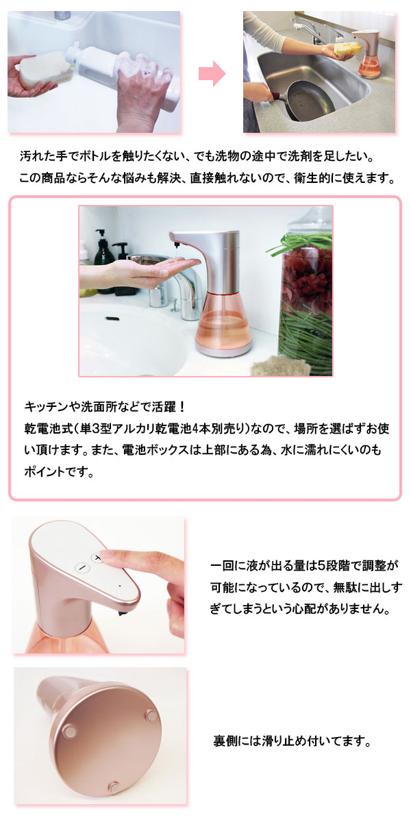 キッチンや洗面所で活躍!触らずに使えて衛生的なセンサー式ソープディスペンサー。
