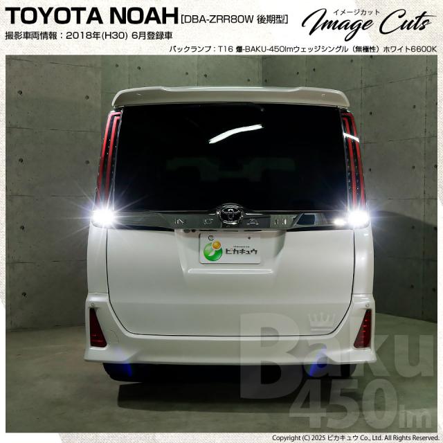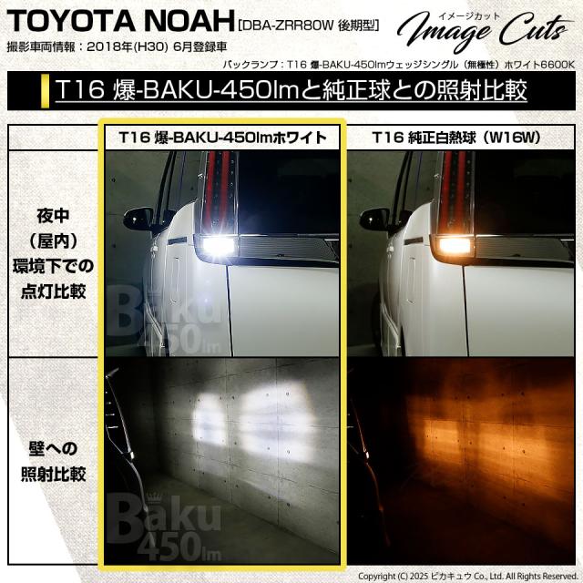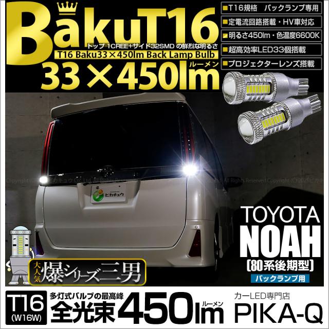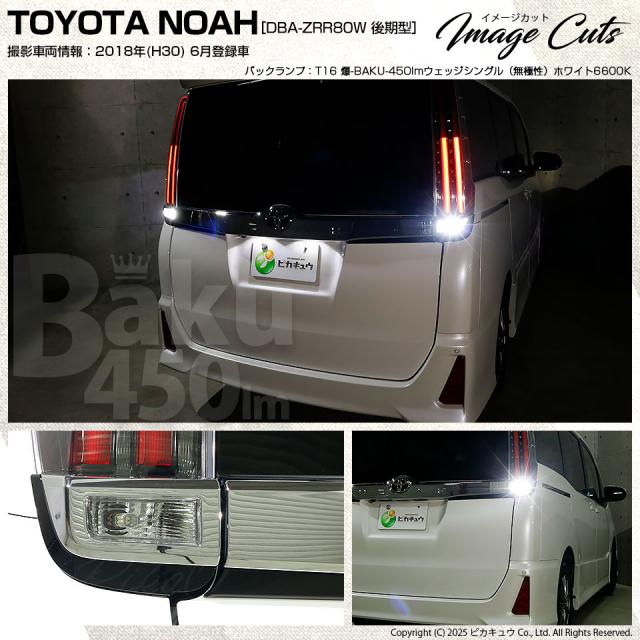 トヨタ ノア (80系 後期) 対応 T16 LED バックランプ 爆光 爆-BAKU-450lm ホワイト 6600K 2個 後退灯 5-A-2