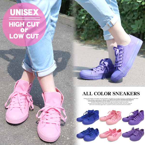 スニーカー ハイカット レディース シューズ 靴 23cm カジュアル ユニセックス メンズ ALL COLOR オールカラー オールピンク オールブルー オールパープル ローカット アウトレット シンプル 無地 (cn3060)