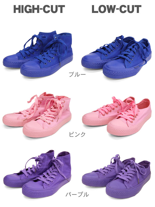 スニーカー ハイカット レディース シューズ 靴 23cm カジュアル ユニセックス メンズ ALL COLOR オールカラー オールピンク オールブルー オールパープル ローカット アウトレット シンプル 無地 (cn3060)