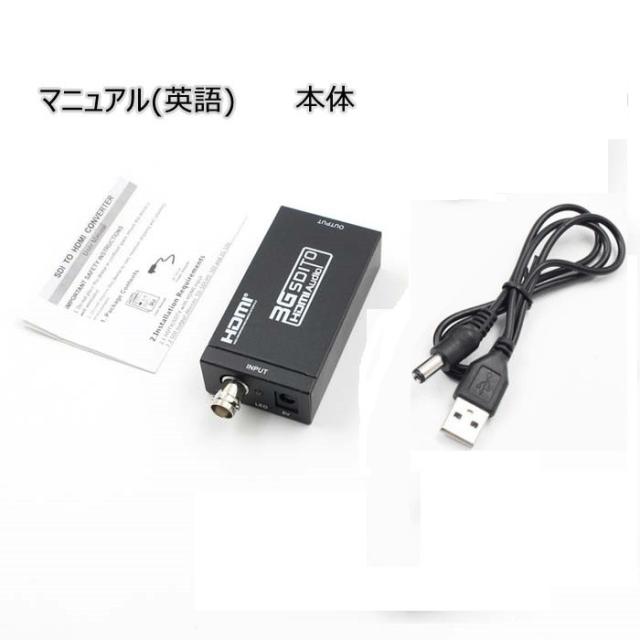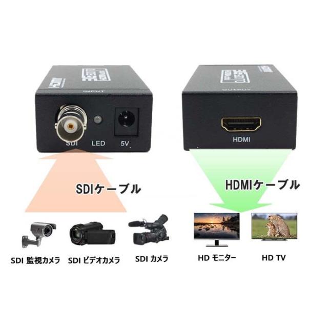 この商品は SDI to HDMI のプロフェッショナル仕様コンバーターミニ SDI to HDMI コンバーターはSDI信号をHDMI 信号に変換する特定商品です特徴:・データ損失が極めて少ない 2.970 Gbit/s のハイビットレートによる信号転送により、 SD-SDI、HD-SDI and 3G-SDI の信号をHDMI信号へ変換し、HDMI/SDI のモニターディスプレイに映し出します。・1台のSDI出力端子付き機器(SDI端子付きカメラ等)から出力されたSDI信号をHDMI信号に変換して、 HDMI入力端子付き機器(ハイビジョンテレビ、PCモニタ、プロジェクタ等)に表示ができます。(SMPTE 425M、SMPTE 424M、SMPTE 292M、SMPTE 259M-Cをサポート)・SDIのループアウト端子が搭載されているので、他のSDI機器へも同一のSDI信号を出力可能です。 ※ご注意 HDMIケーブル及び同軸ケーブルは別売です。・複数(レイヤー)接続が可能となっており、延長距離を自由に調整できます。・SMPTE 425MレベルBから1080p 50/59.94/60 4:2:2 10ビットのレベルまで変換します。 製品仕様: