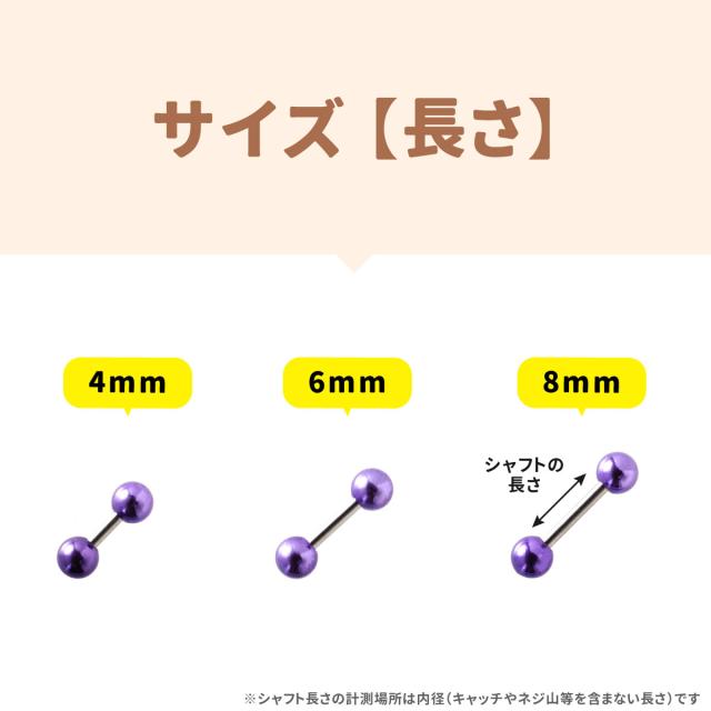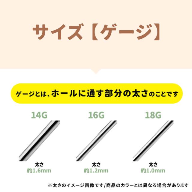 - 色違いで4色ほど購入しました。安価な商品にもかかわらず一つずつ丁寧に梱包されていてビックリ。次の購入に役立つカード?が入っていて私はこのカードを大切に保管しています。耳の厚さを計測出来たり、バーの太さ、長さ、チャームの大きさ等々が実寸台でわかるようになっていてピアス初心者の私には神カードでしたよ!