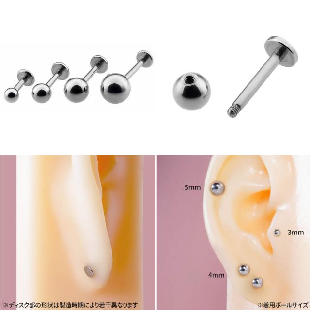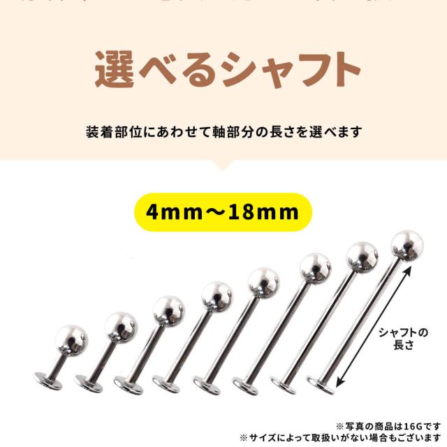 太さ14G,16G,18G シャフト4mm〜18mm ボール2mm〜6mmのラブレットスタッドです。
