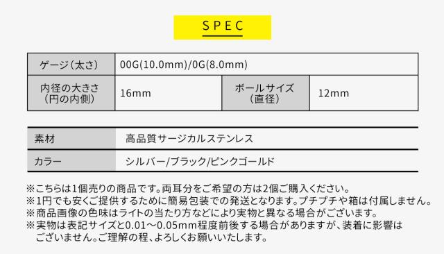 キャプティブビーズリング 00G 0G サージカルステンレス シルバー ピンクゴールド ブラック イヤーロブ ボディピアス ラージゲージ