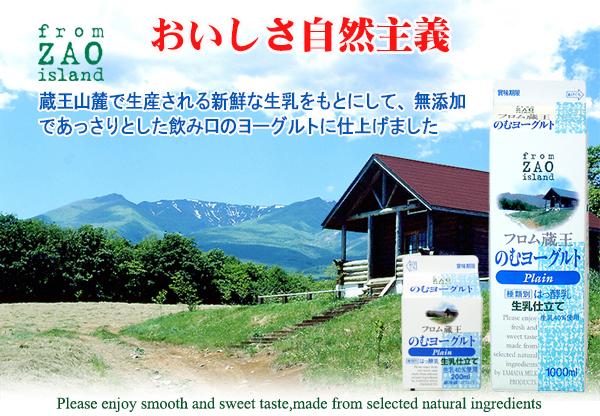 | < 蔵王山麓の生乳を使用して作った、 乳脂肪分が1.5%のあっさりとした飲み口が特徴ののむヨーグルトです。安定剤、香料不使用。 |
