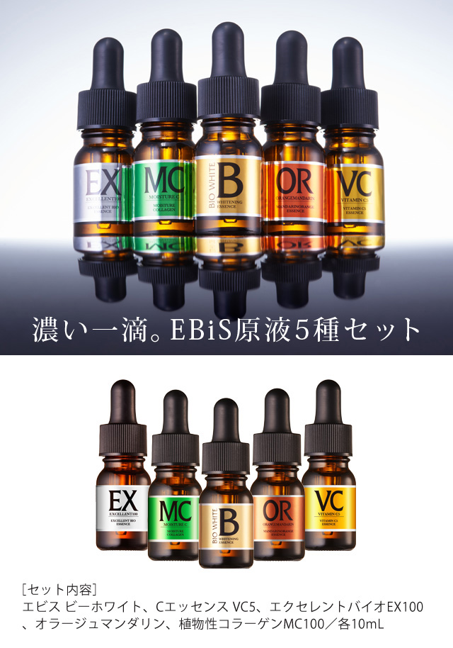 EBiS原液5種セット 美容液 美白 ビタミンC 毛穴ケア 毛穴 スキンケア セット 原液 美顔器 イオン導入 プレゼント ギフト エビス ebis