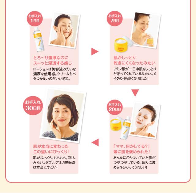 アミノローションを塗った後にアミノクリームでふたをすれば、極上うるおい肌の完成♪