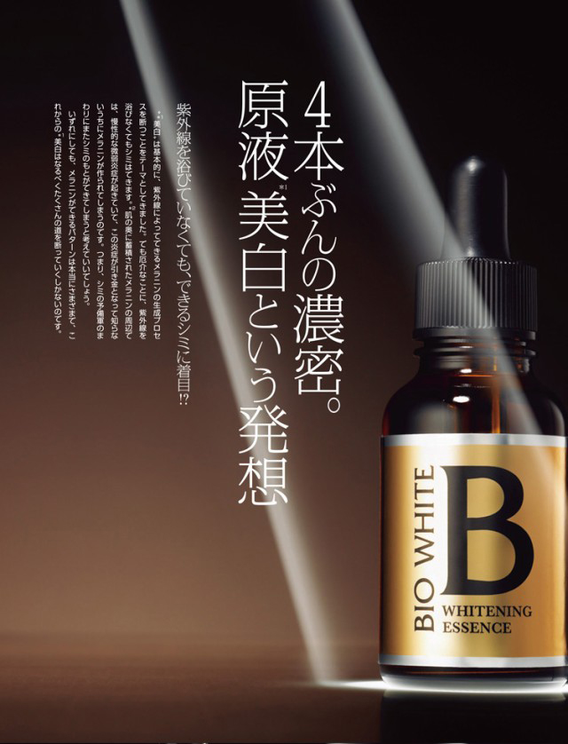 話題のシミ集中ケア!薬用美白原液美容液エビスビーホワイトはあらゆるシミを許さない。薬用美白原液塗った瞬間スーッとなじみシミの原因に多角的にアプローチします。いつものお手入れにエビスビーホワイトを足すだけで本格的な美白エイジングケアに