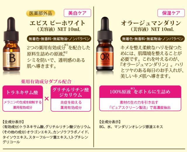 美容液Wセット ビーホワイト10ml×オラージュマンダリン10ml 美容液 美白 シミ 毛穴ケア 毛穴 保湿 キメ メB プレゼント 人気 原液美容液 メール便 送料無料 エビス ebis