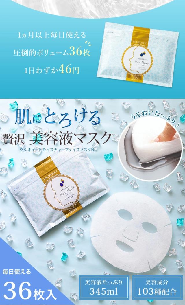 ウルオイートN モイスチャーフェイスマスク36枚入り 大容量 朝パック メB 敏感肌 透明感 フェイスパック フェイスマスク プレゼント 保湿 潤い 乾燥 エビス ebis