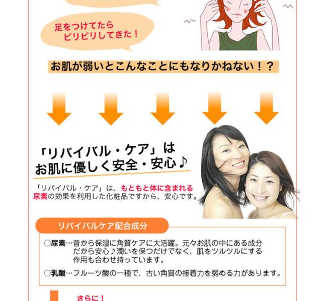 1週間で古い足の皮がペロリと剥けて、つるつるの足へ☆当店スタッフも3人試して、効果をつるつる足へ変身しました!最初は、ちょこちょこでてくるだけですが、ちょうど1週間ぐらいで急にめくれ出すので驚かないでくださいね!今度のリバイバルケアは60分でOK。カサカサ足の角質、ひび割れをケア。