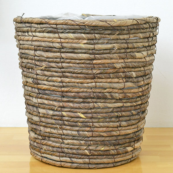 アジアンインテリアにぴったりのナチュラル素材、バナナリーフ製の鉢カバーです。内側には針金とビニールが貼ってあり丈夫な作りになっています。