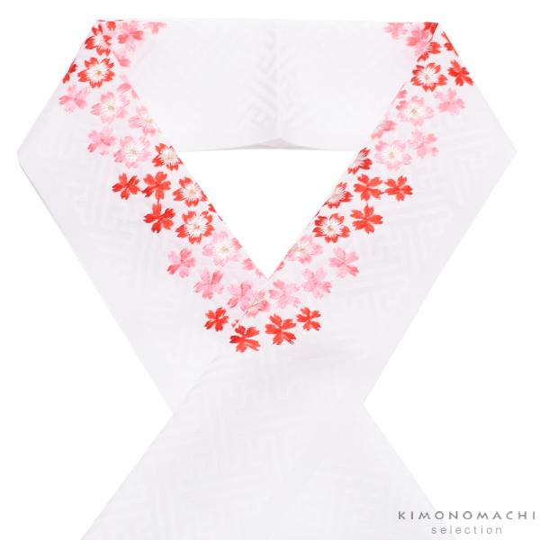 刺繍 半衿「白色 赤 ピンクの桜刺繍」 七五三に 刺繍半襟【メール便対応可】<H>